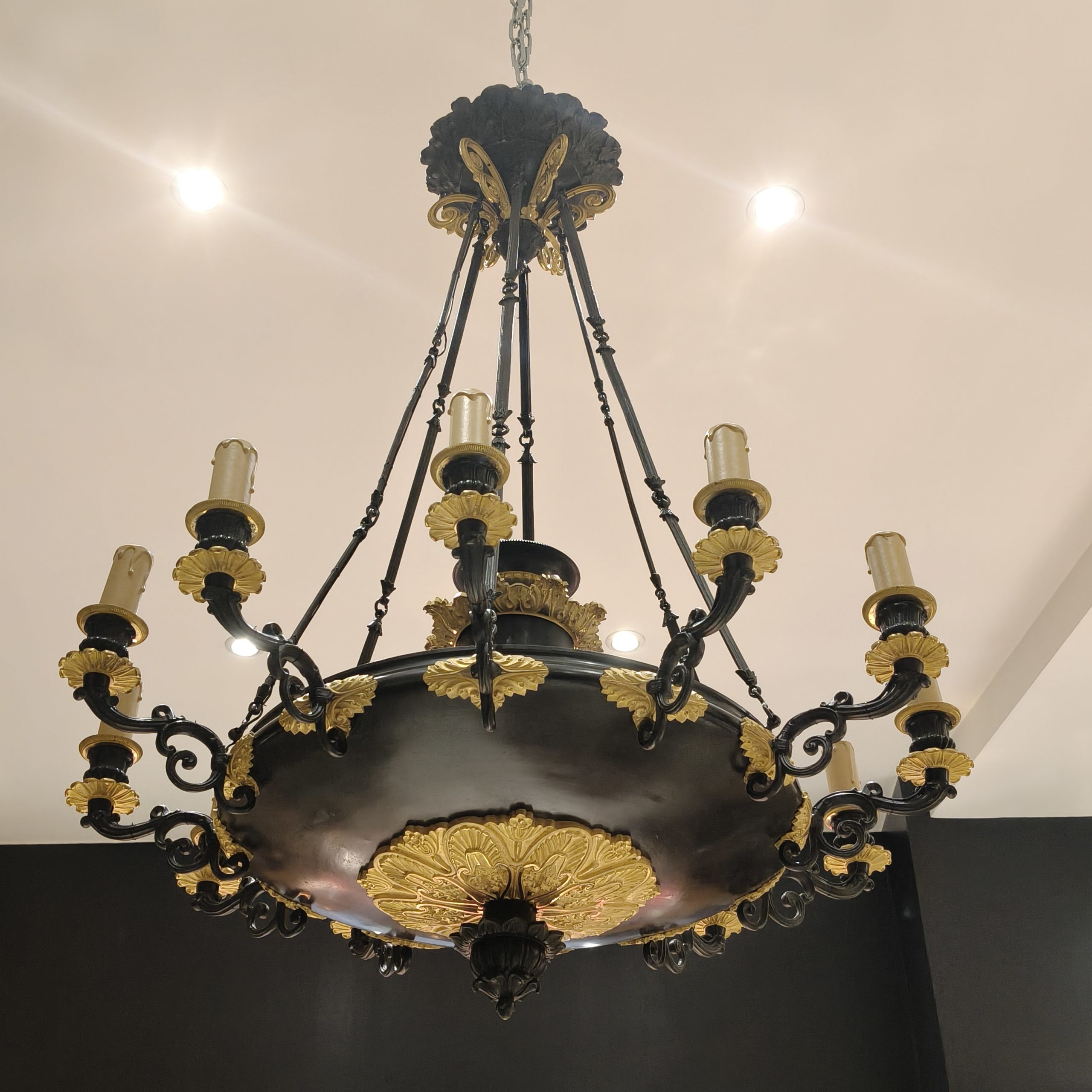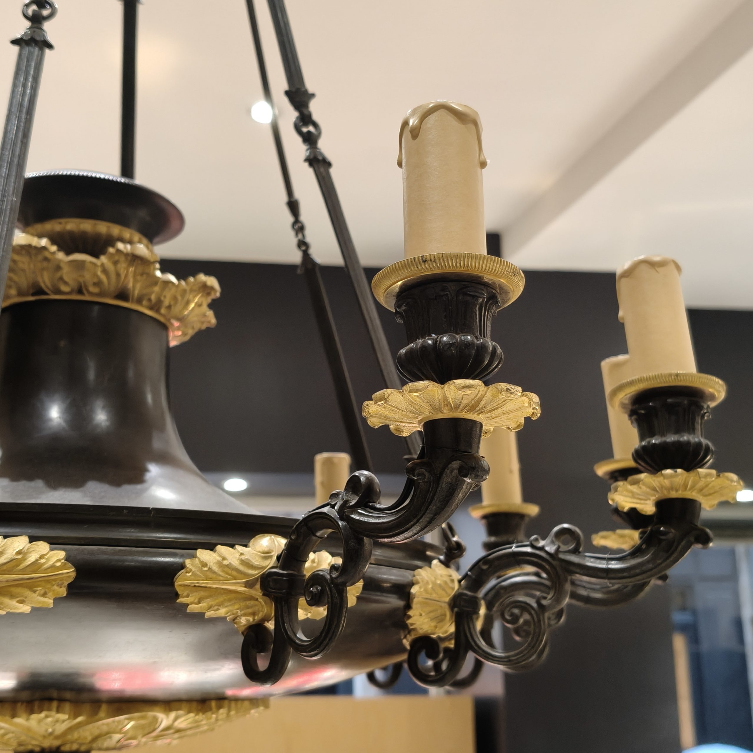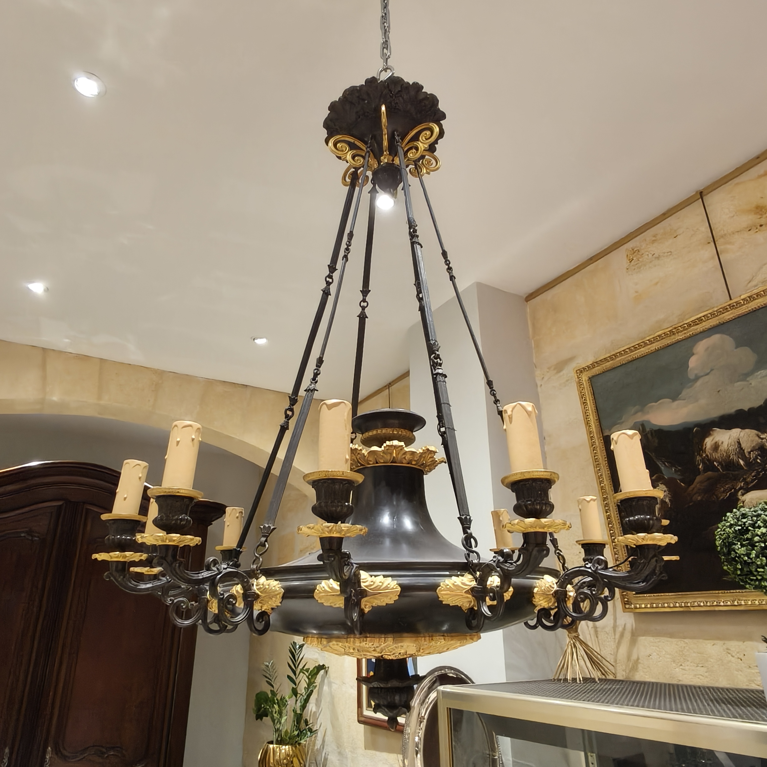 Ce lustre à douze bras de lumière est un témoignage raffiné du savoir-faire parisien sous la Restauration.